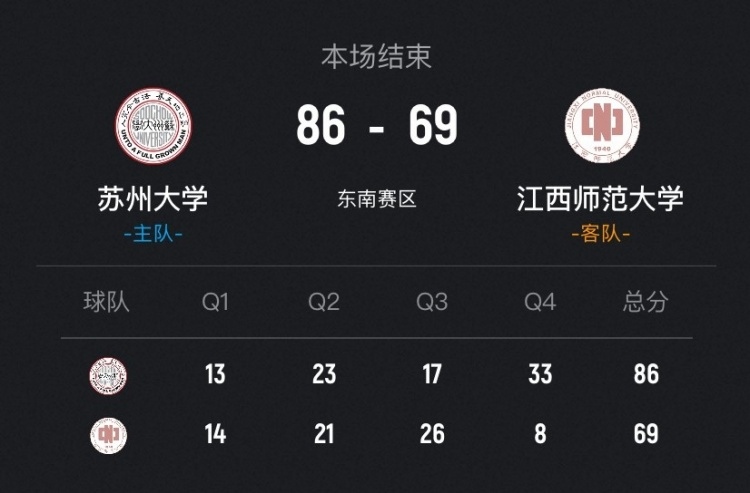 CUBAL-苏州大学以86-69力克江西师大