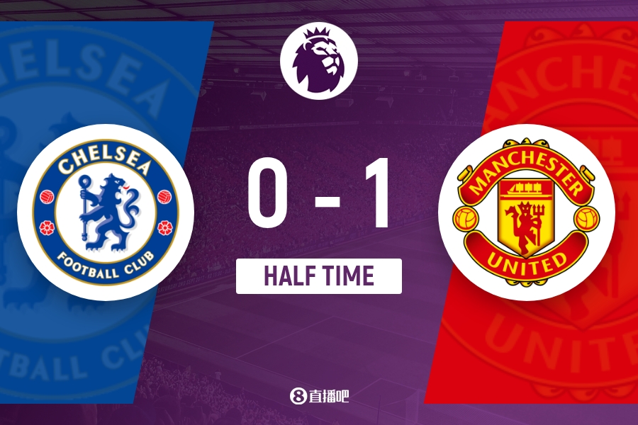 上半场伤停补时5分钟,半场结束,切尔西暂0-1曼联。