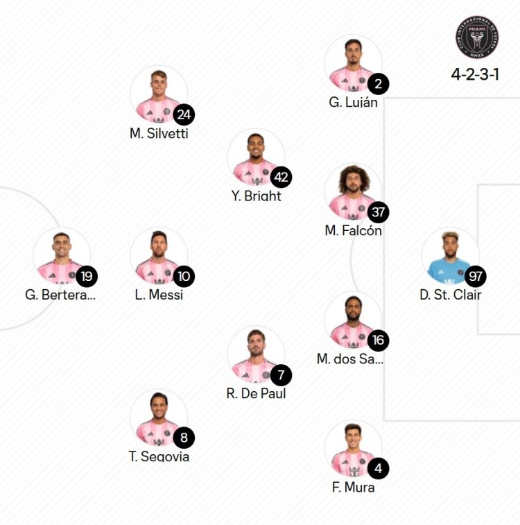 迈阿密国际首发阵容曝光:梅西德保罗领衔,贝尔特拉梅箭头,苏亚雷斯替补