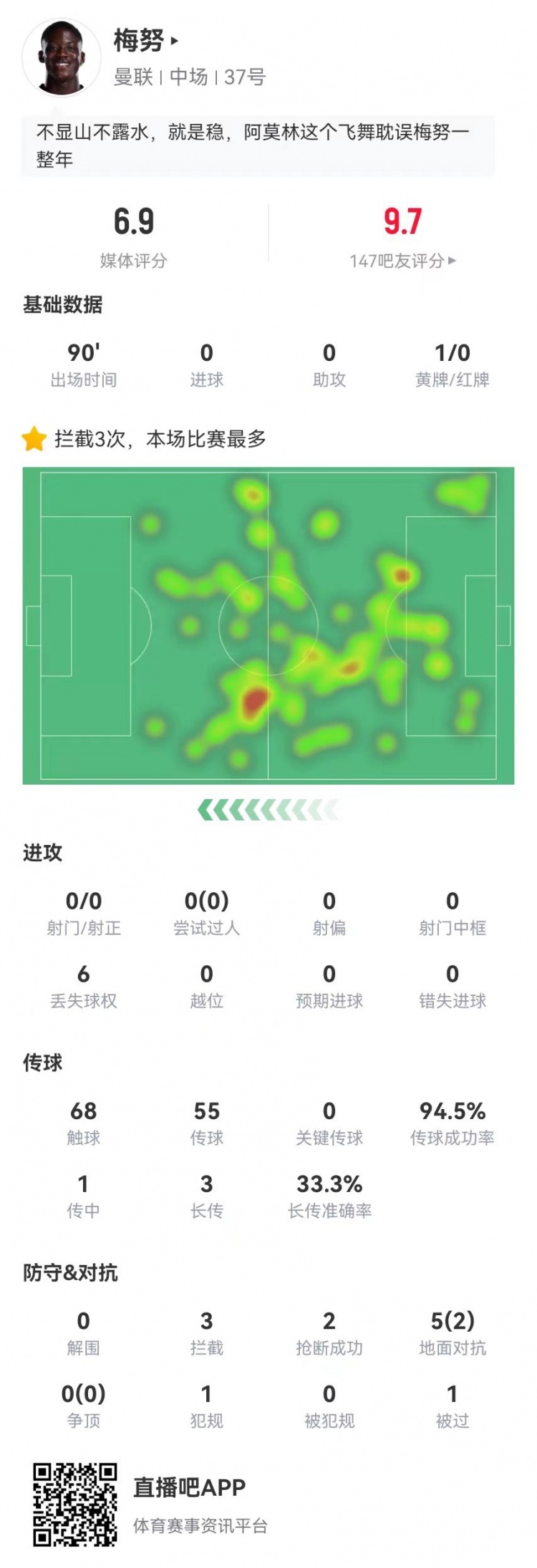梅努数据透析:防守控场 不俗表现