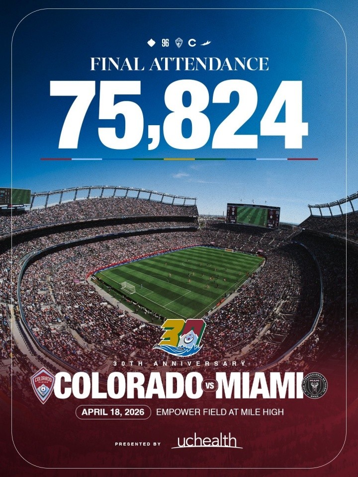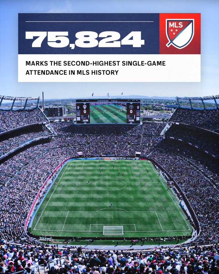一场足球盛宴在科罗拉多急流与迈阿密国际之间上演,借助丹佛野马队的球场,双方的对决吸引了75824位球迷亲临现场,刷新了急流队的历史纪录!据美职联官方统计,这是本赛季全联赛第二高的上座人数,足以证明这场比赛的吸引力。梅西的贡献也让观赛体验倍增!