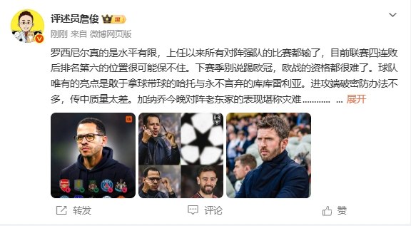 詹俊谈罗塞尼尔:水平不足导致连败,曼联联赛前景光明
