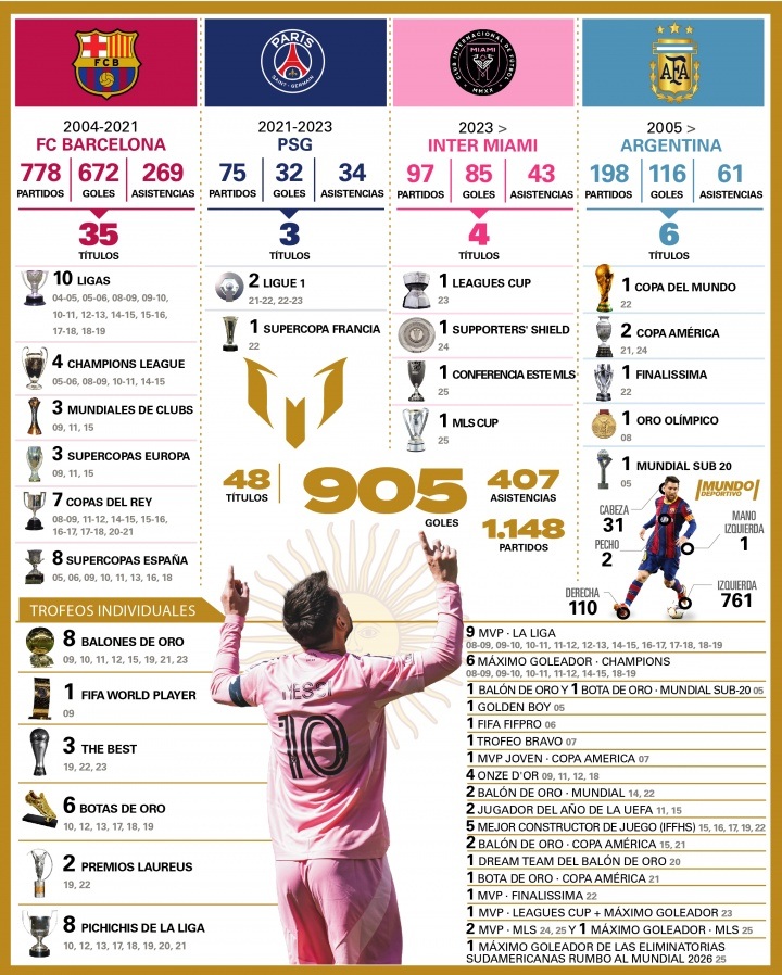 38岁梅西数据盘点:1148场905球,迈阿密97战85球职业生涯回顾