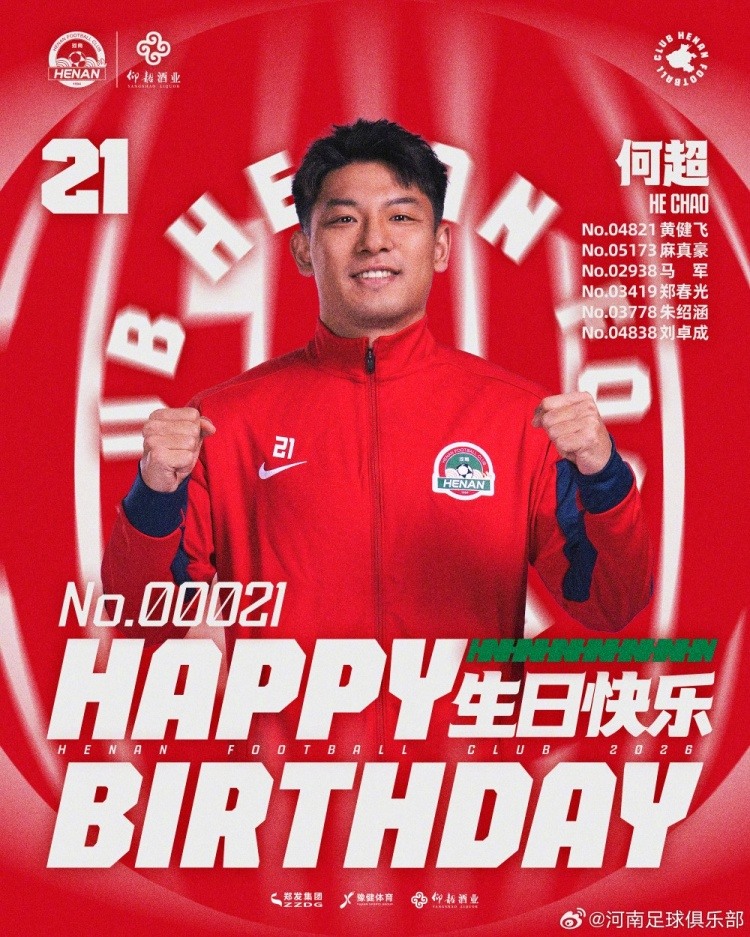 河南俱乐部7人今日生日,何超等获祝福