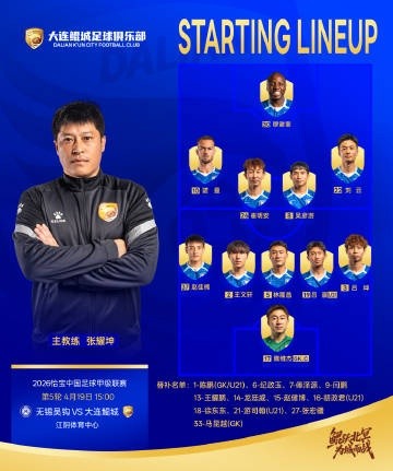 大连鲲城VS无锡吴钩首发名单:中甲联赛第5轮对决前瞻