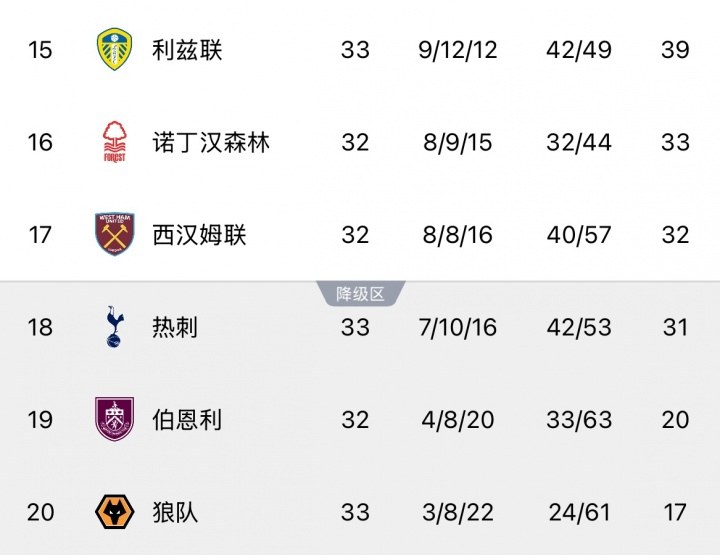 英超第33轮战罢,热刺主场被布莱顿绝平后,依然未能摆脱降级困境。仅剩5场淘汰赛的机会让他们倍感压力。下轮客战狼队后,维拉、切尔西等强队将轮番登场。保级对手的赛程同样不容小觑:西汉姆联将遭遇阿森纳的挑战,诺丁汉森林则要客战切尔西和曼联。利兹联和埃弗顿将成为热刺、西汉姆联和诺丁汉森林的共同敌人,而切尔西则可能成为多队争夺的焦点,整体保级局势扑朔迷离。