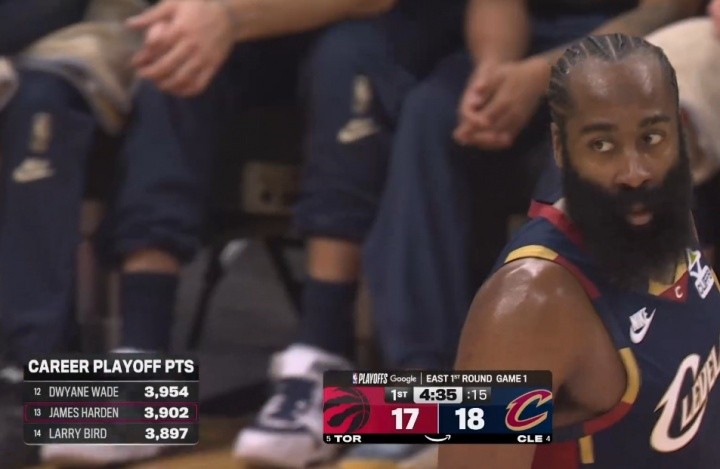 哈登季后赛表现抢眼,历史得分榜再添新名
