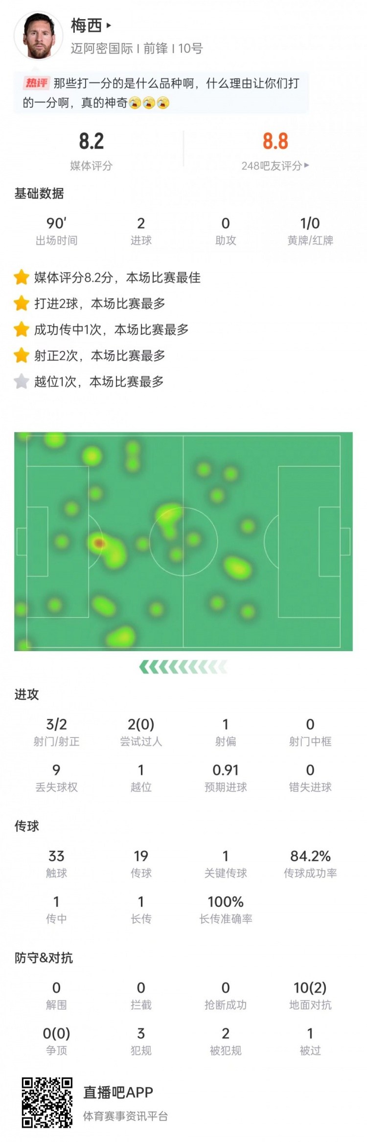梅西梅开二度 荣膺迈阿密vs科罗拉多比赛MVP