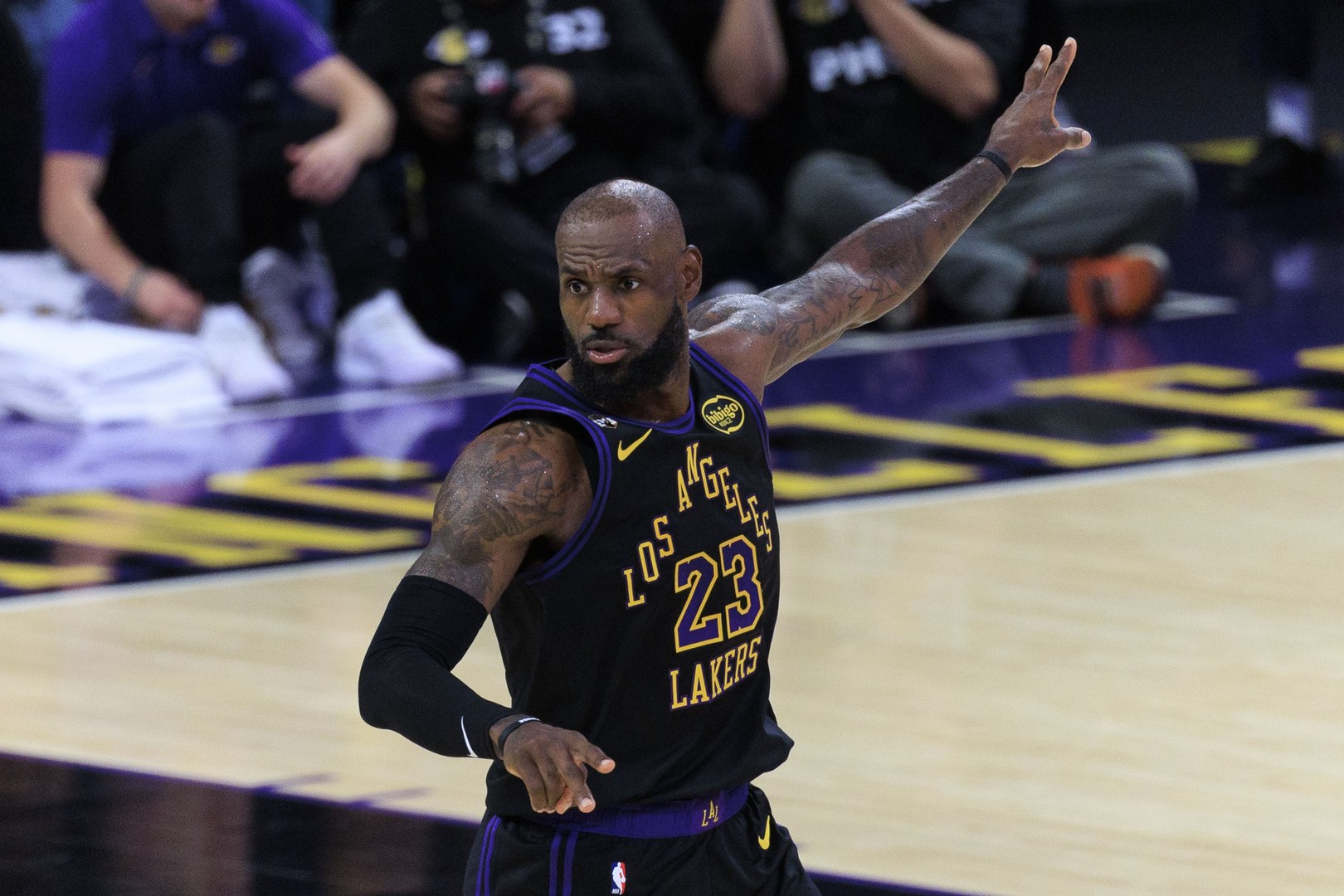 老将反应快如闪电 詹姆斯飞身断球砸阿门出界