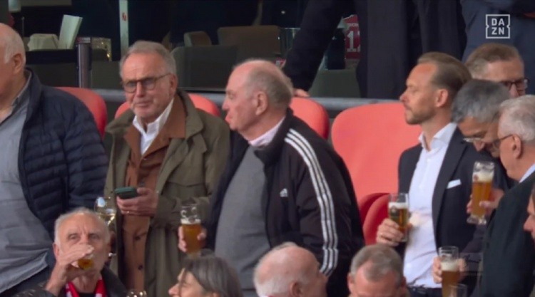 拜仁提前夺冠,高层看台小酌庆祝,赫内斯等人均饮酒
