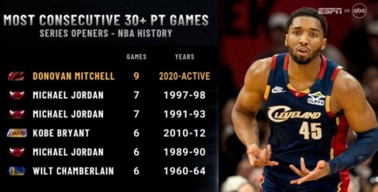 米切尔9场G130+破纪录 乔丹三连冠 科比纳什入选