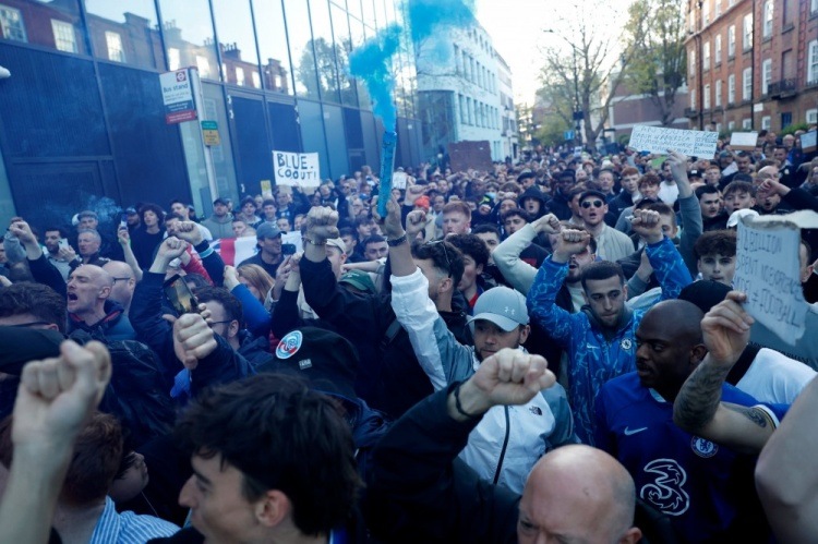来自两大BlueCo俱乐部的球迷集体发声,矛头直指伯利领导的财团。在切尔西与曼联比赛即将开幕时,蓝军球迷和斯特拉斯堡球迷举行联合抗议,表达对俱乐部现状的不满。球迷们指出,BlueCo的经营决策已导致球队成绩下滑——本赛季切尔西的欧冠资格岌岌可危,这种局面促使球迷不得不走上街头表达诉求。多张现场照片为这一问题提供了视觉佐证。