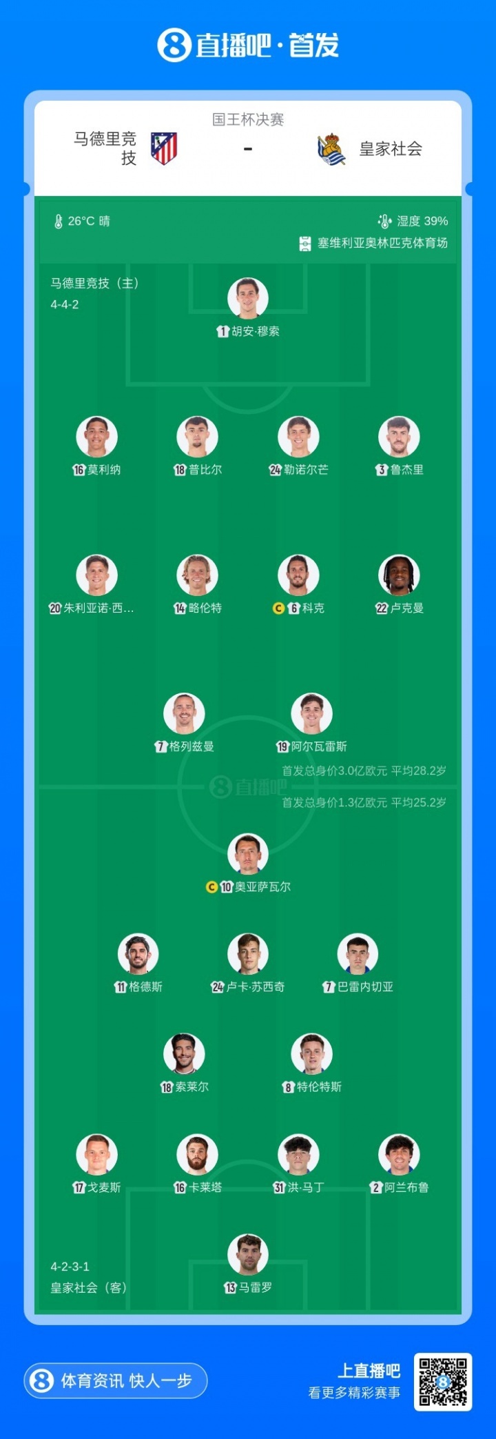 最新体育快讯:国王杯决赛战幕拉开,马竞与皇家社会的首发阵容尘埃落定。马竞方面,小蜘蛛马科斯·略伦特和 tal vez 格列兹曼将首发亮相,而卢克曼也将在中场位置上出战。马竞历史底蕴深厚,已10次捧杯国王杯,但上一次夺冠是在2012/13赛季。皇家社会虽只有3次夺冠记录,但2019/20赛季曾问鼎桂冠。两队过往交锋记录显示,马竞保持9场不败的骄人战绩。