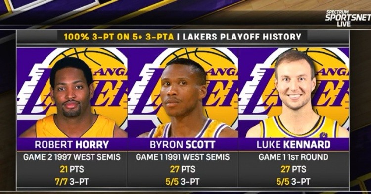 湖人历史最佳:仅3人单场5记三分且命中率满分